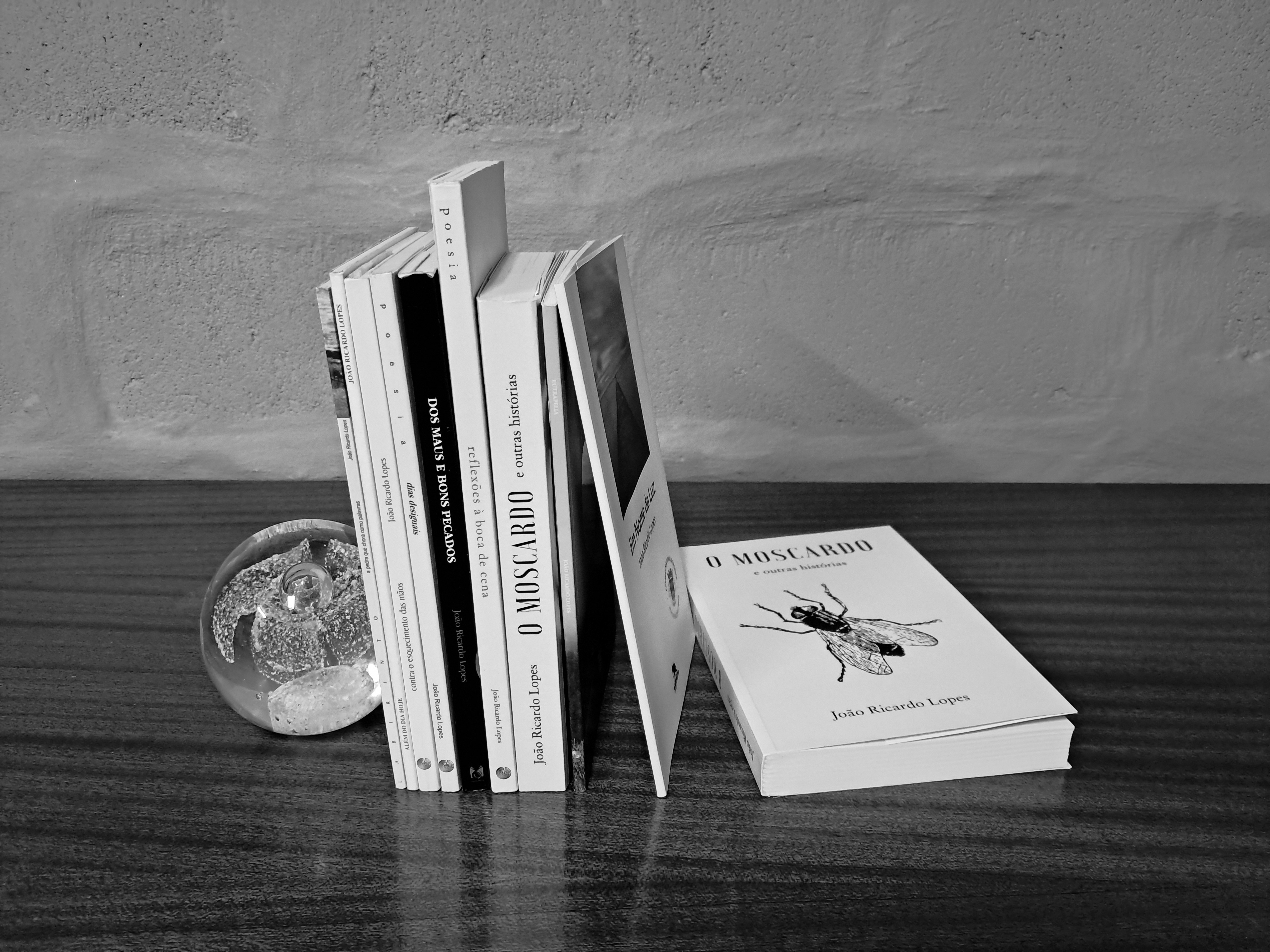 João Ricardo Lopes is the author of the following works: A Pedra que Chora como Palavras (The Stone Weeping Wordlike, 2001), Além do Dia Hoje (Beyond the Day That Is, 2002), Contra o Esquecimento das Mãos (Lest Hands Be Forgotten, 2002), Dias Desiguais (Uneven Days, 2005), Dos Maus e Bons Pecados (On Sins, Both Good and Bad, 2007), Reflexões à Boca de Cena / Onstage Reflections (2011), O Moscardo e Outras Histórias (The Horsefly and Other Stories, 2018), Eutrapelia (2021), and Em Nome da Luz (In the Name of Light, 2022).
